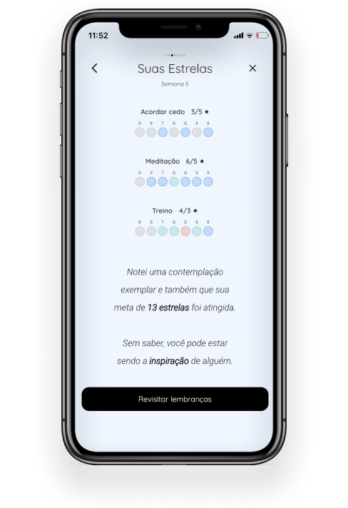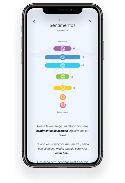 Seus sentimentos. Queremos que você consiga visualizar seus altos e baixos e ganhar consciência sobre seus padrões. Abraçar cada sentimento sem julgamento e assim aprender sobre si.